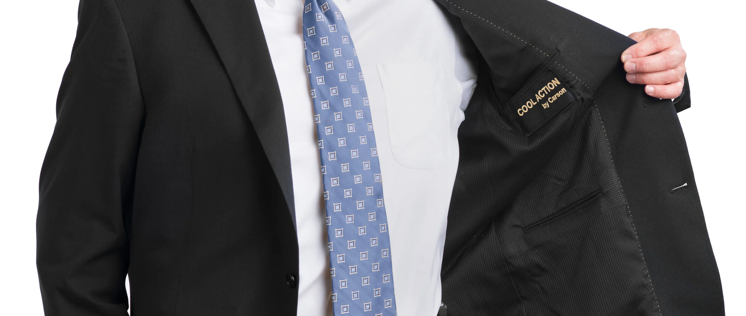 The patented Cool Action Suit® is revolutionary in its incorporation of flexible, lightweight, moisture-wicking fabric into professional business suits. This draws moisture away from the body and dress shirt where it can evaporate, leaving the inner layer protected, comfortable and cool.